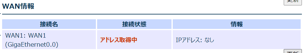 いつまで経っても WAN 側 IP がふられない。
